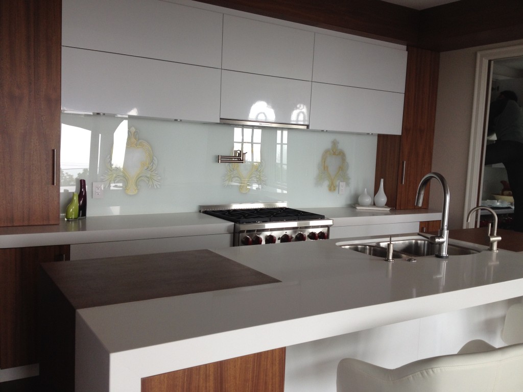 Glass Back Splash is a design technique that allows you to customize your kitchen, bathroom or room with an accent. We offer a variety of different customized designs and options that will give any room in your house or commercial property an artistic twist. As with many of our other services, your glass back splash can be customized with many of our artistic features and finishes, including sandblasting and airbrushing.