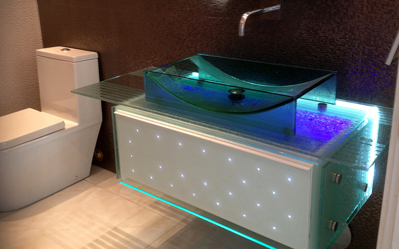 Are you looking to add a more customized and personal look to your mirror? Glasstopia offers uniquely designed mirrors with LED lights for your home or office! Our glass specialists will work with you to create an initial design and layout and will provide impeccable service all the way through installation. Add a unique shape, design, color and finish, and you will have something truly unique and beautiful to call your own.